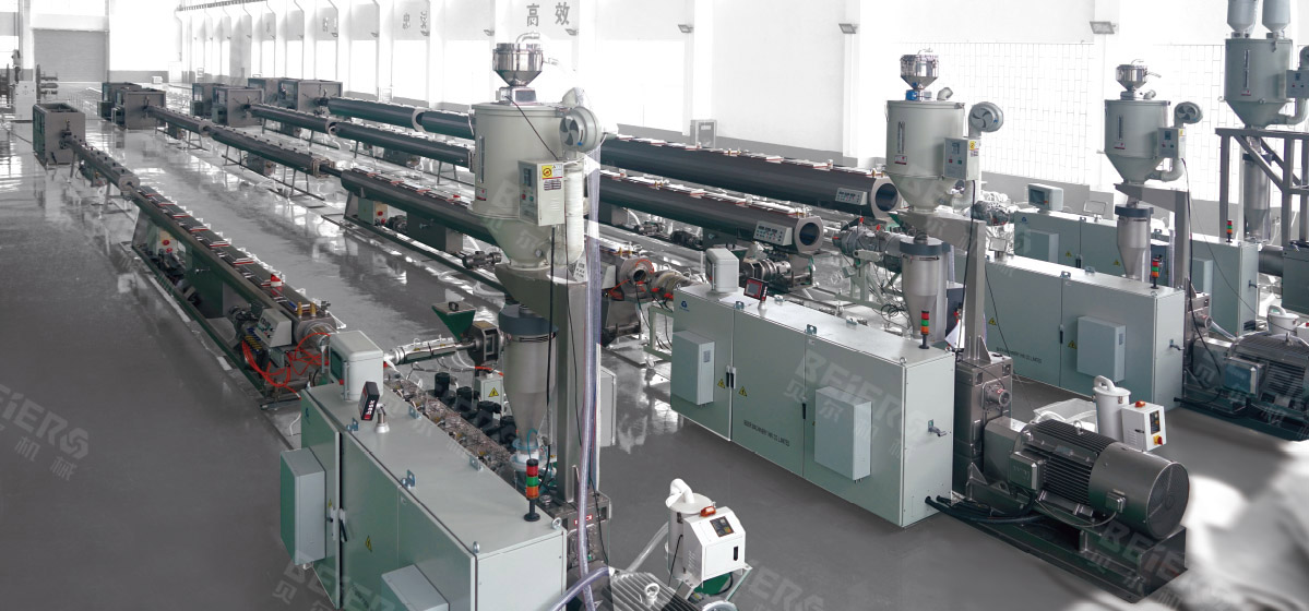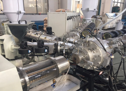 擠出機(jī)螺桿采用大長徑比:L/D=38, 雙混煉頭,分離型結(jié)構(gòu), 可使熔融物料在進(jìn)入模頭前100%塑化。