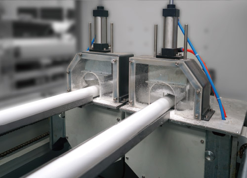 該機組由錐形雙螺桿擠出機, 模具, 真空定型臺, 牽引機, 切割機, 翻料架等組成。